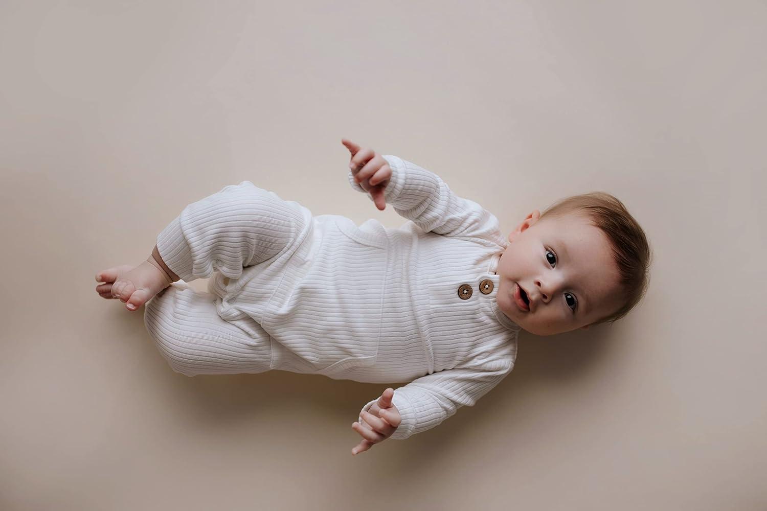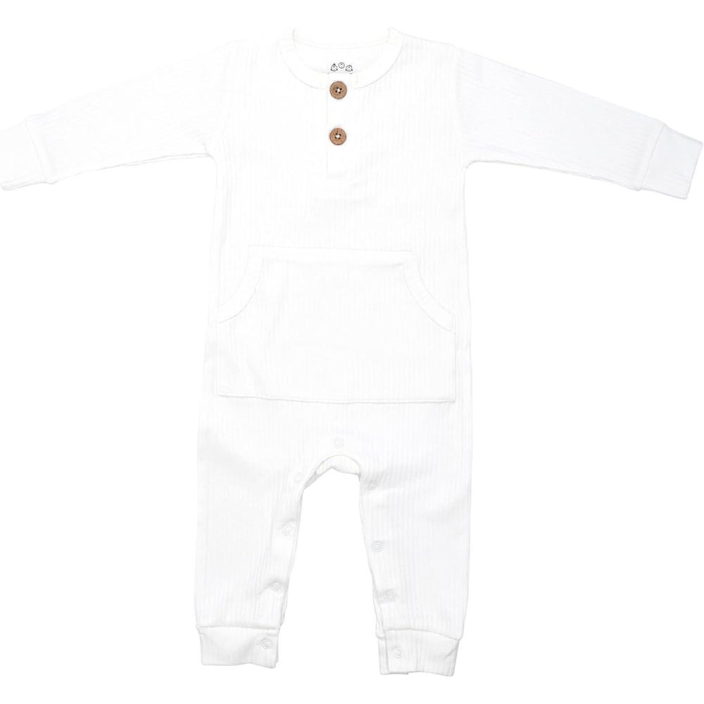 Three Little Tots – Baby Girl Boy Romper Ribbed Bodysuit Solid Plain One Piece Jumpsuits One Piece Baby Clothes Outfits Fall(White)