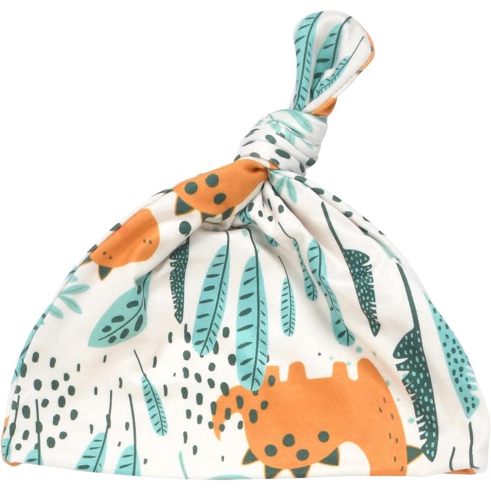 Three Little Tots – Knotted Newborn Hat Baby Beanie Hat Top Knot Stretchy Buttery Soft(Dinosaur)