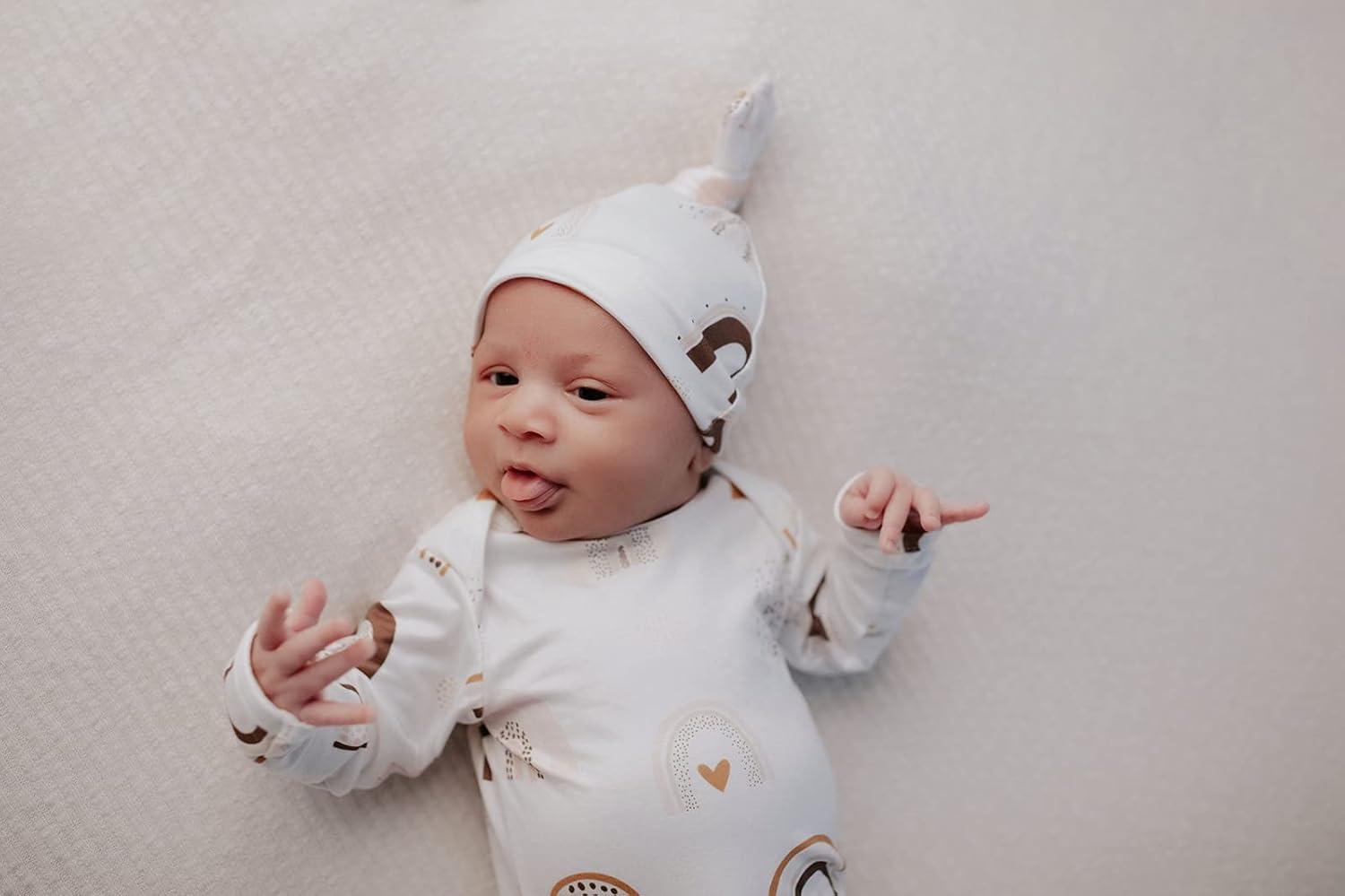 Three Little Tots – Knotted Newborn Hat Baby Beanie Hat Top Knot Stretchy Buttery Soft(Rainbow)