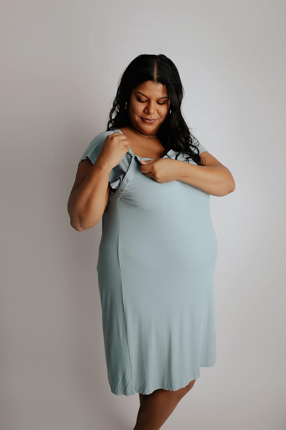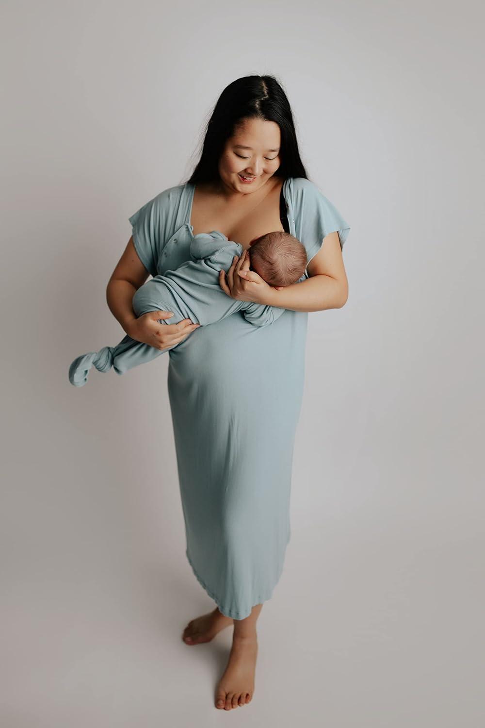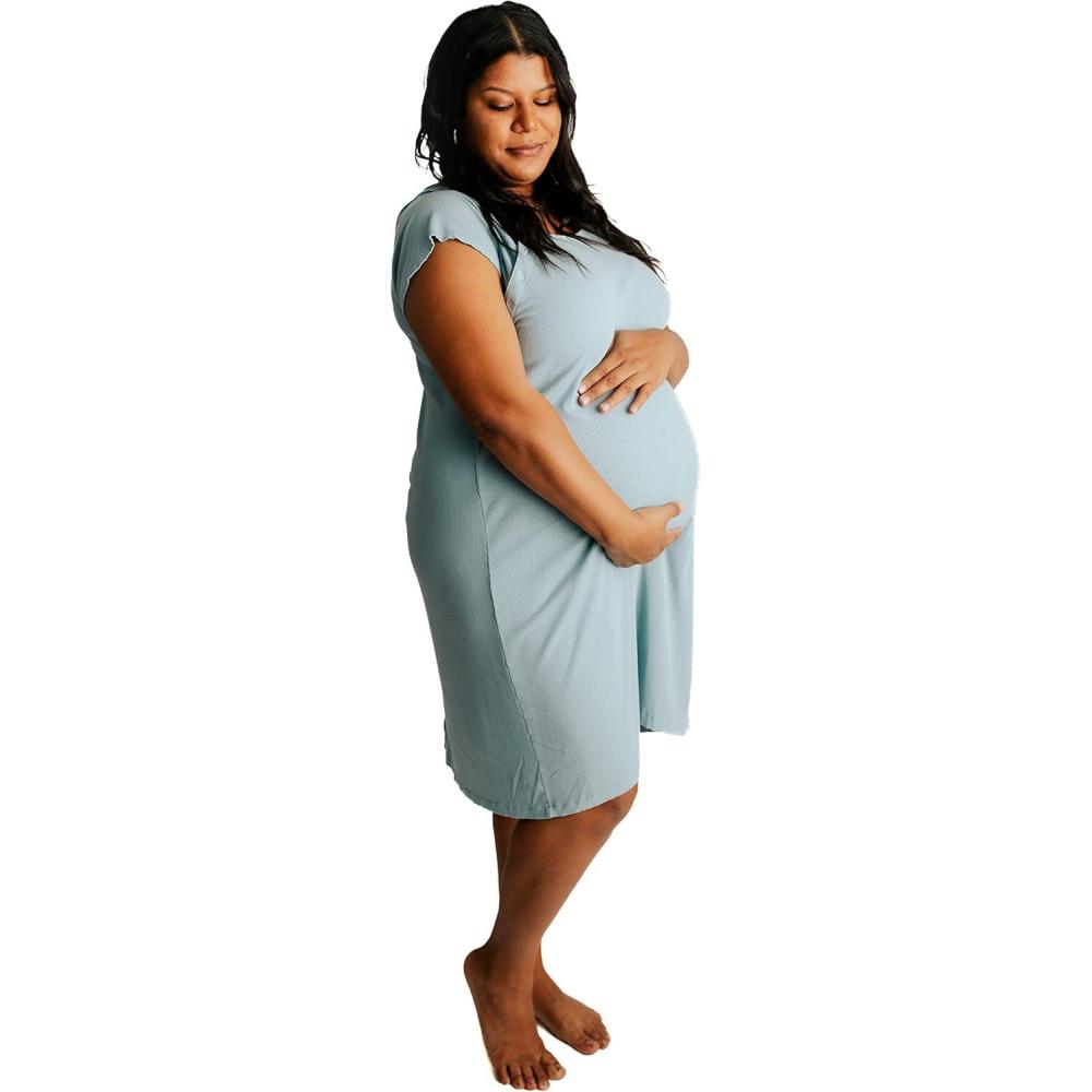 Three Little Tots Mommy Labor and Delivery Gown – Stretchy Soft Maternity and Nursing Nightgown(Harbor Mist)