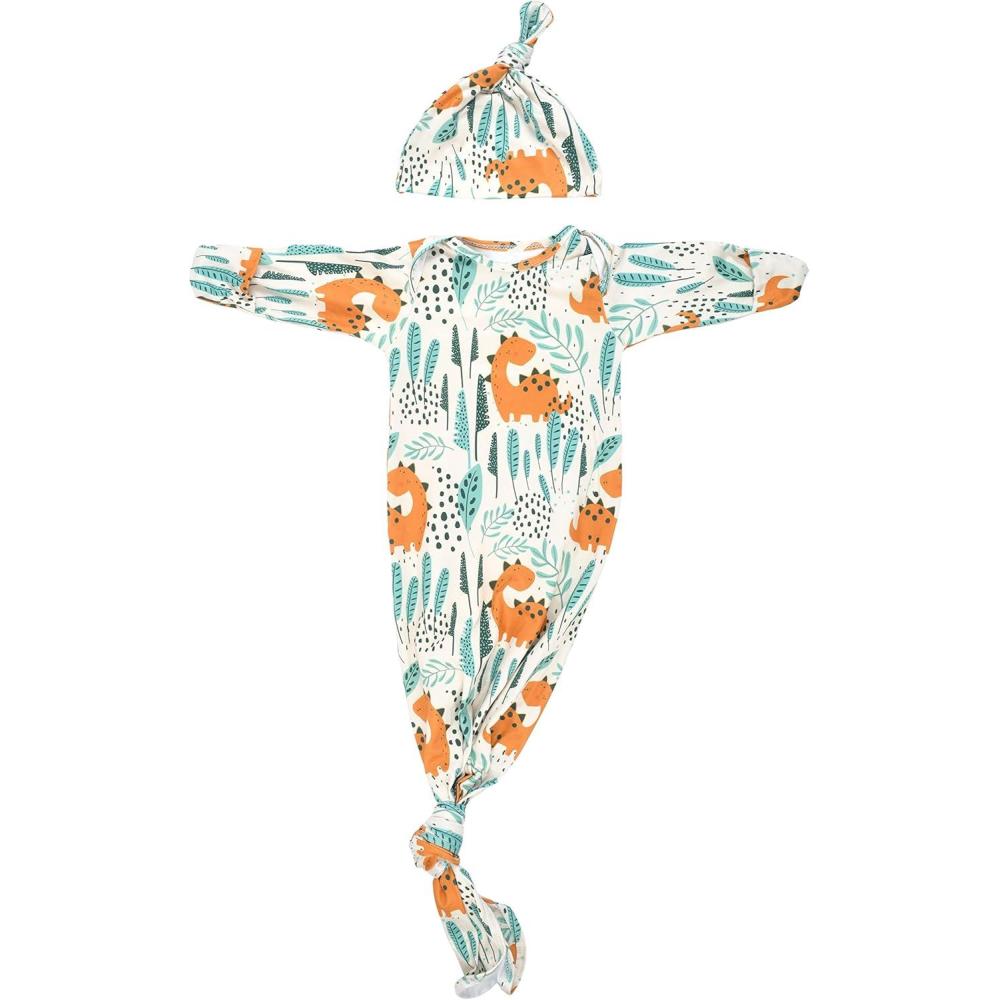Three Little Tots Newborn Baby Knotted Tie Gown – Infant(Dinosaur With Hat)