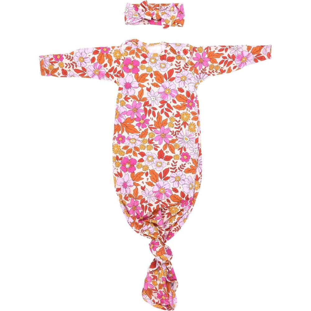 Three Little Tots Newborn Baby Knotted Tie Gown – Infant(Wild Child With Bow)
