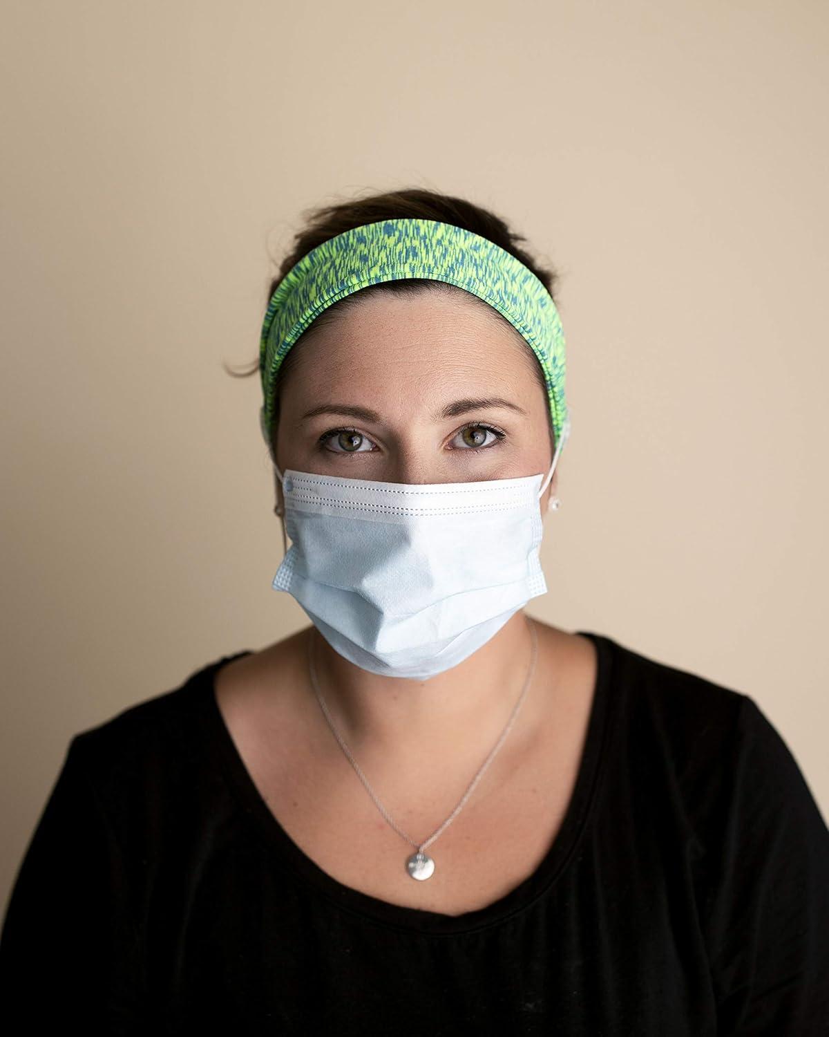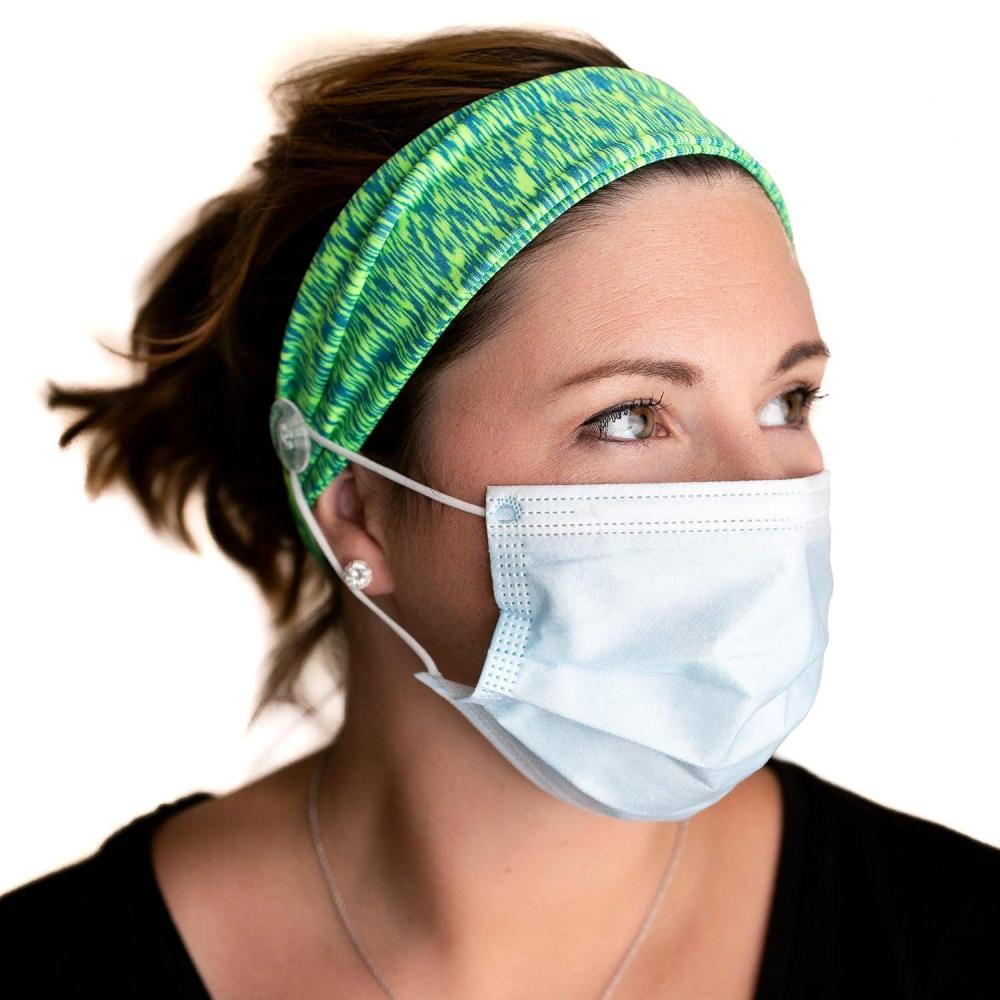 Three Little Tots Savior Band headbands with buttons for mask for nurses, going out to the gym, grocery store or other places to protect your ears (Black & White)(Green & Blue)