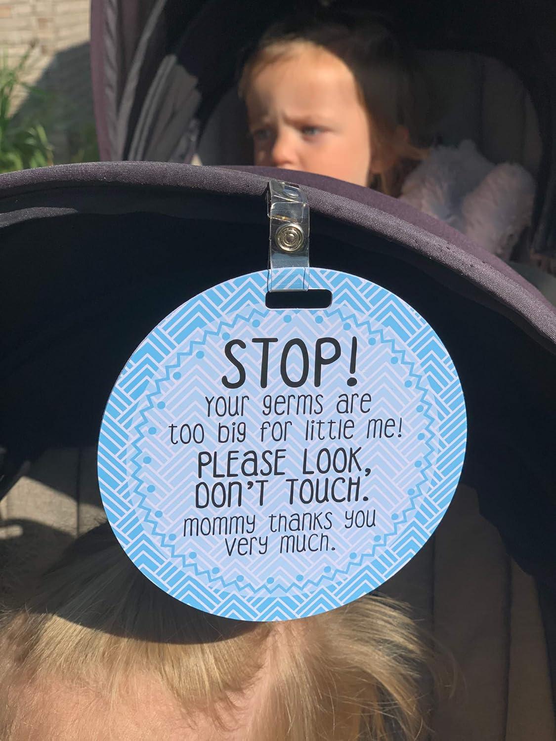 Three Little Tots Two Pack – No Kissing and Woodlands No Touching Baby Car Seat and Stroller Signs – CPSIA Safety Tested(Blue Mommy/Black White)