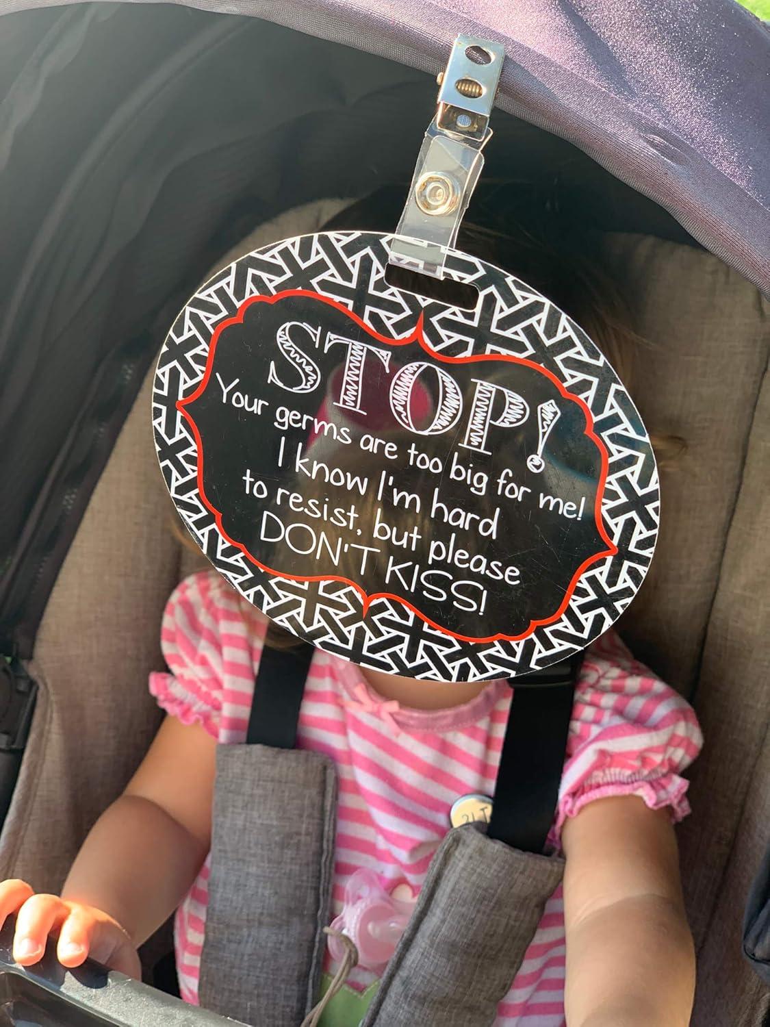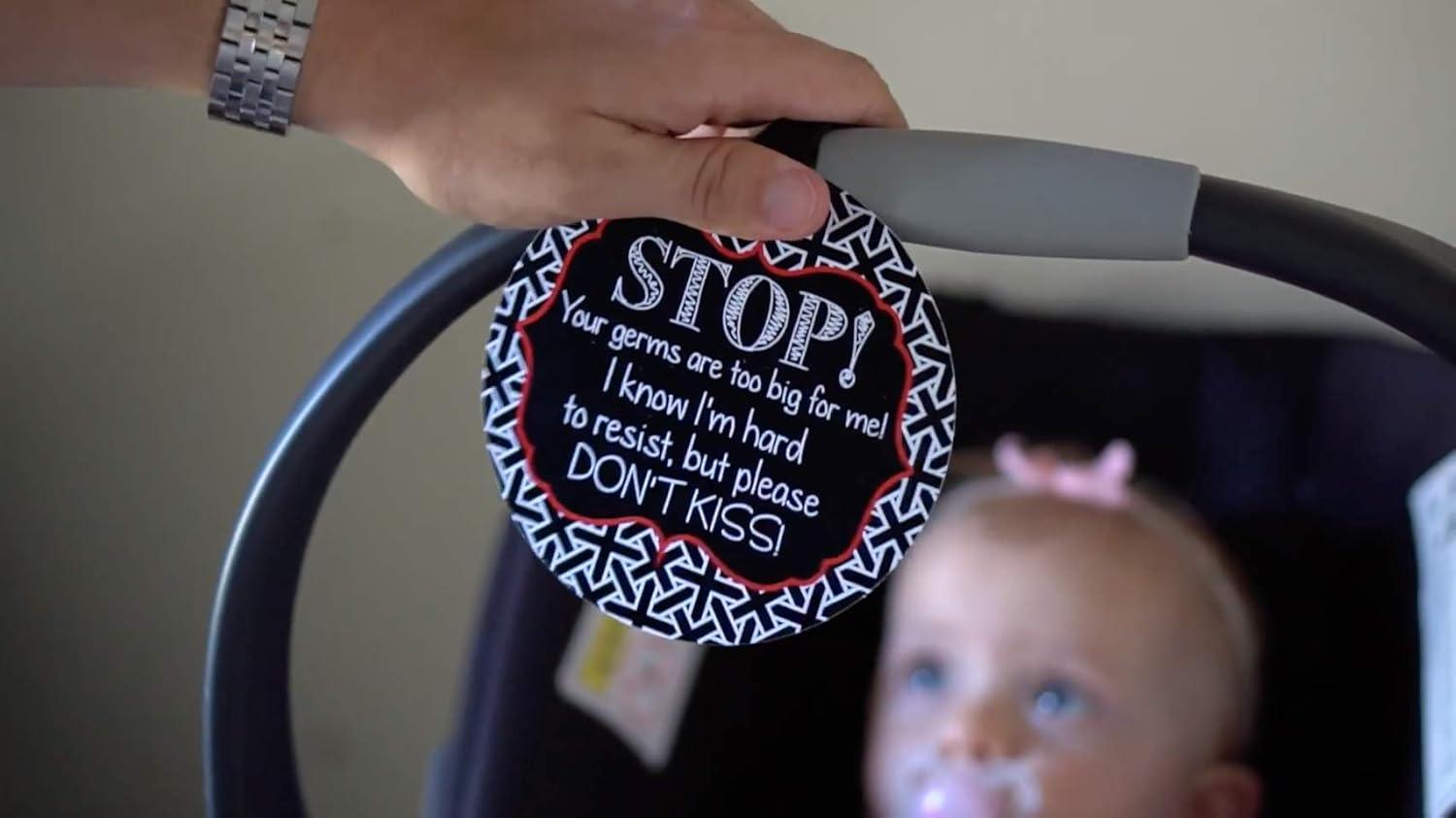 imageThree Little Tots Two Pack  No Kissing and Woodlands No Touching Baby Car Seat and Stroller Signs  CPSIA Safety TestedFlowerBlack White